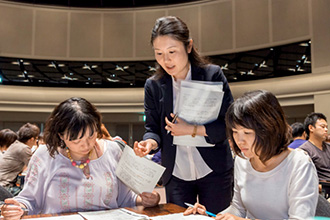 お互いの意見を交わし、要所での教員の指摘。教員の専門性と社会人学生の豊かな経験の交流が授業を深めます。