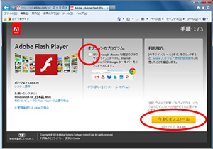 A ページ中央の「□はい。Google Chromeを・・・」のチェックを外した後で、画面右下にある「今すぐインストール」をクリックします。 |