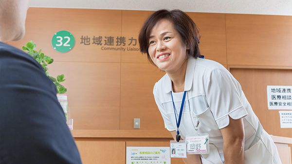 病院ではデータから考えたケアで病気を治そうとしますが、そこには環境や人間関係などが密接に関わっており、それ次第で治療の仕方も変わってきます。私は、その大切な部分である生活や心の中にまで入っていく立場であり、せっかくのその立場を活かせるよう、退院支援看護師など、他のスタッフとも連携し合って、もちろん秘密は厳守しますが、必要な情報は共有するようにしています。